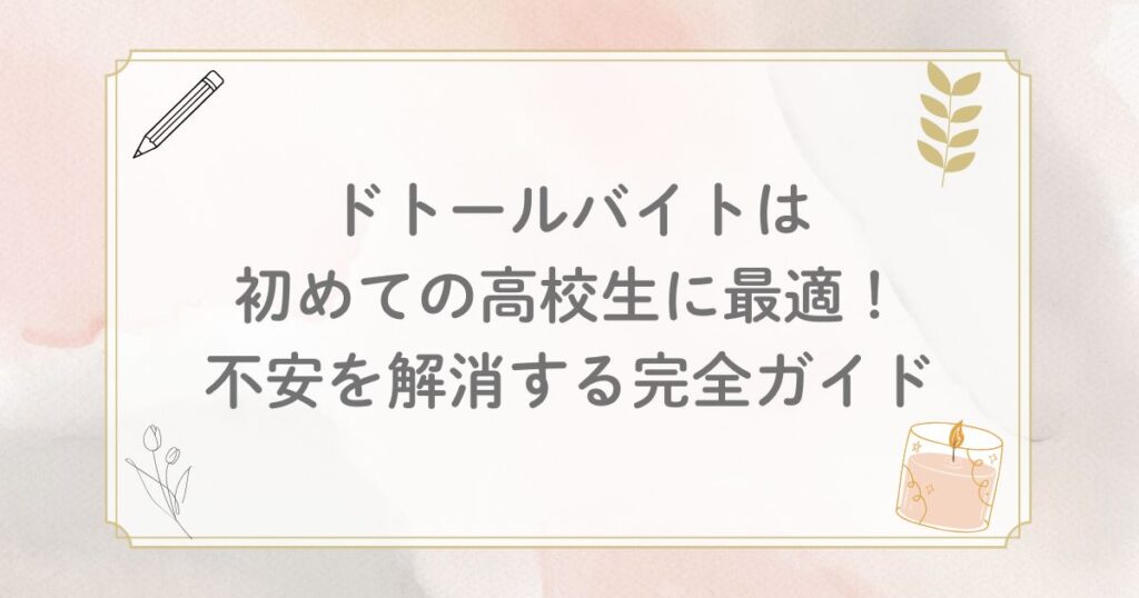 初めてのバイト探し、不安でいっぱいですよね。『学校と両立できるかな』『仕事、覚えられるかな』そんな気持ち、すごくよく分かります。 でも、安心してください。ドトールコーヒーショップは高校生のあなたのバイトデビューにぴったりの場所です。 この... -