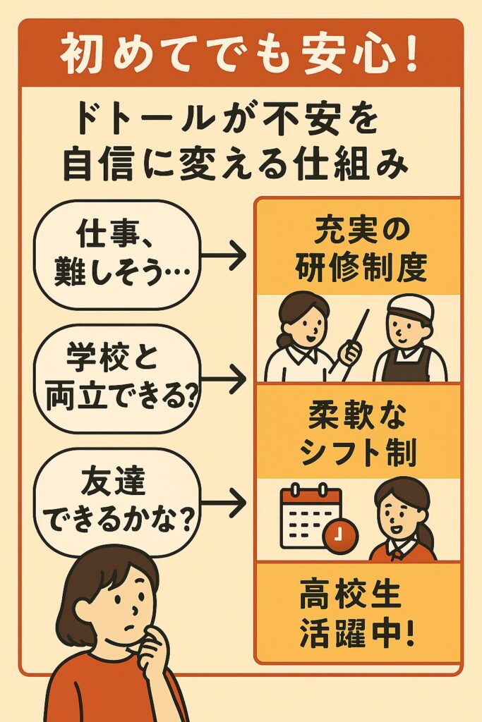 - 学校との両立への不安: 「テスト期間や部活と両立できる?シフトの融通は利くのかな?」